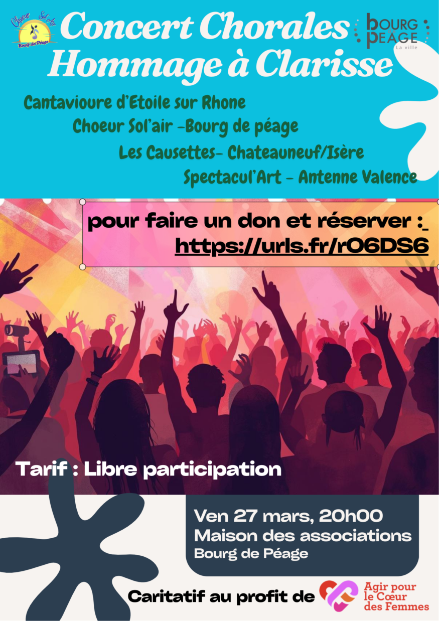Rendez-vous le 27 Mars à 20h00 à la maison des associations de Bourg de Péage, pour un concert en Hommage à Clariss.