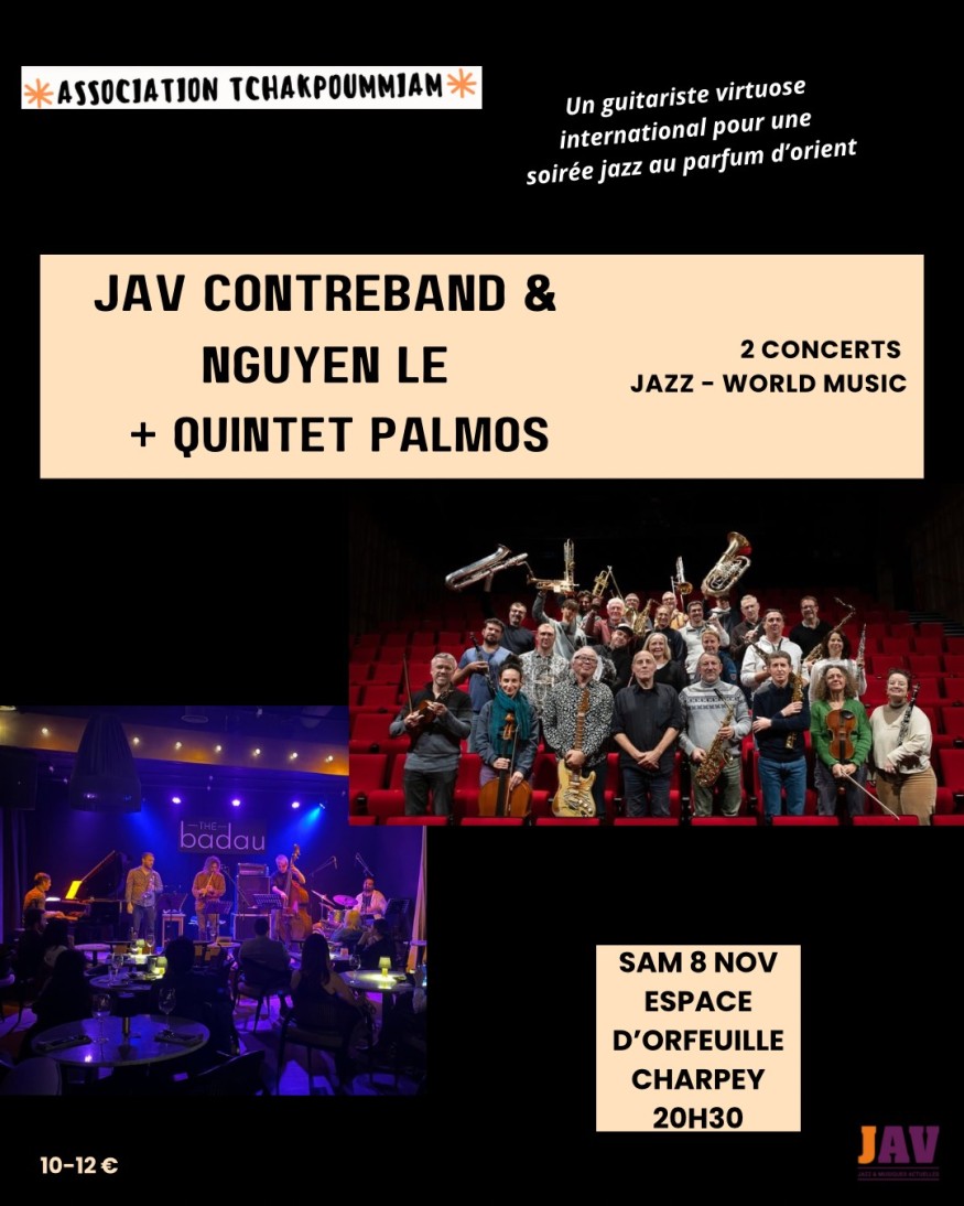 Billetterie : HelloAsso – Palmos // JAV Contreband feat Nguyên Lê