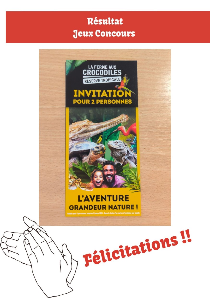 qui remporte : 2 PLACES POUR LA FERME AU CROCODILE A PIERRELATE