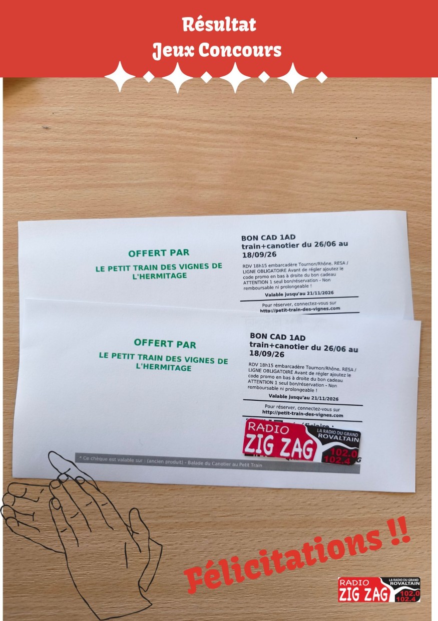 qui remporte : 2 places pour la balade du canotier et le petit train des vignes à Tain l'Hermitage