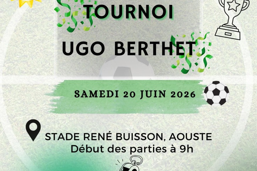 L’USBA organise son traditionnel Tournoi Ugo Berthet le Samedi 20 juin 2026 au Stade René Buisson – Aouste-sur-Sye et vous attend nombreux pour une journée de football, de compétition et de con...