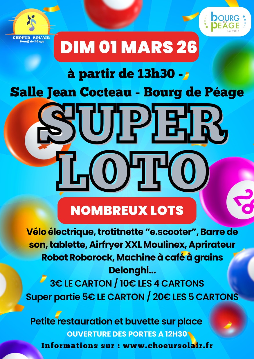 Rendez-vous le Dimanche 1er mars à la salle Jean Cocteau pour le Loto Annuel à 13h30 avec de nombreux lots à gagner :