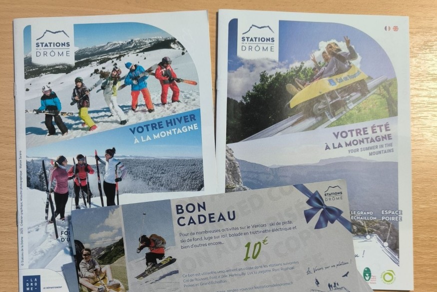 -> 5 lot de 2 bon cadeaux de 10 euros pour de nombreuses activités sur le VErcors (ski de piste, ski de fond, luge sur rail, balade en trotinette et bien d'autres encore....
