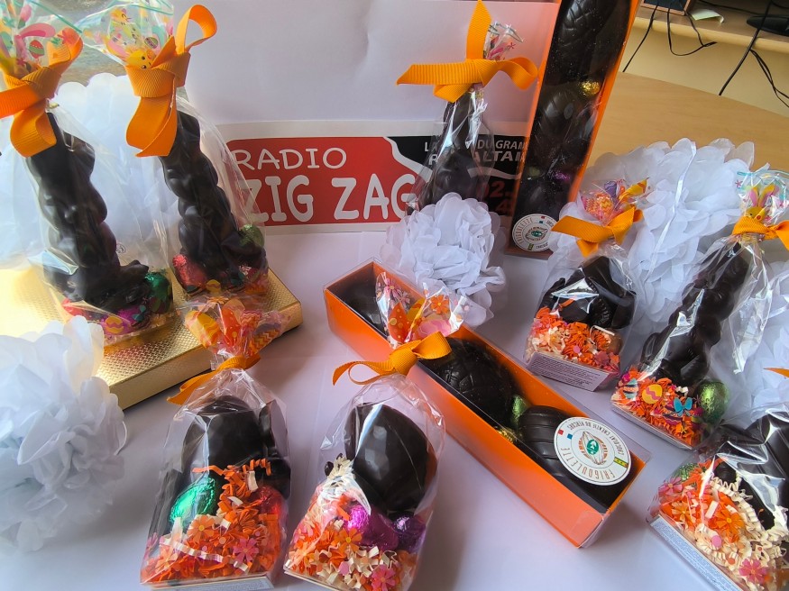 Les grand(e)s gagnant(e)s ont été contacté par téléphone afin que de venir récuper leurs chocolats de Pâques offert par la chocolaterie La Frigoulette dans les locaux de Radio zig zag.