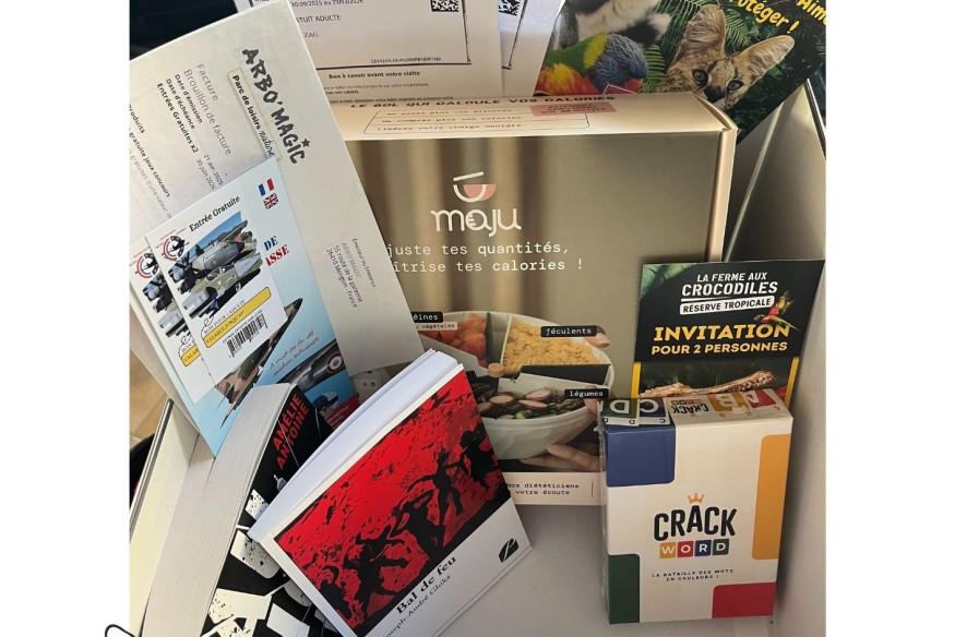 un super lot composé de : Romans, d'entrées à des parcs de loisirs et d'un bol maju !