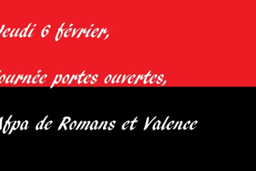 Les centres Afpa de Valence et Romans ont le plaisir de vous inviter à la prochaine journée portes ouvertes qui aura lieu le jeudi 6 février de 9h00 à 12h00 et de 14h à 16h30.